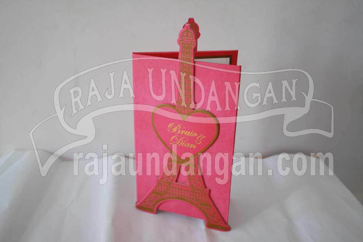 Spesifikasi undangan pernikahan eiffel love pink Braiv dan Dian adalah sebagai berikut: